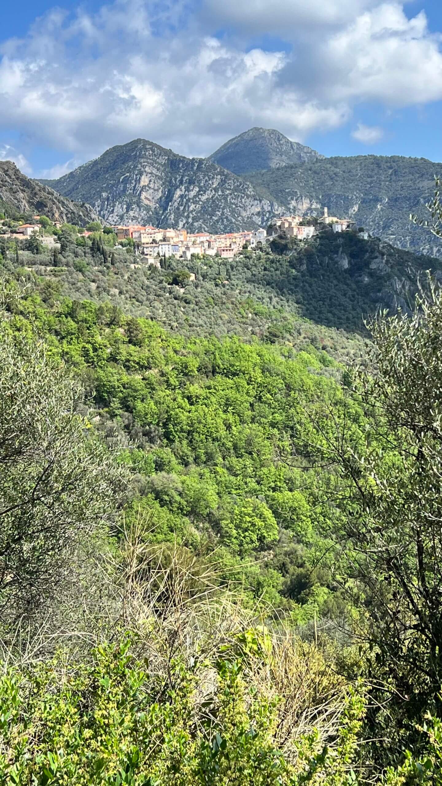 La montée débute au pont Charles Albert par la route qui va à Gilette . À mi parcours je prends la direction de Bonson . C’est très tranquille à partir de là et les paysages sont magnifiques . La vue sur Bonson vaut le coup d’œil . Il faut monter ensuite jusqu’au village de Revest les roches qui se trouve à 800 m d’altitude environ .. la route monte encore quelques kilomètres et c’est 1 km avant le village de Toudon qu’il faut prendre la route qui part à droite vers le mont Vial.